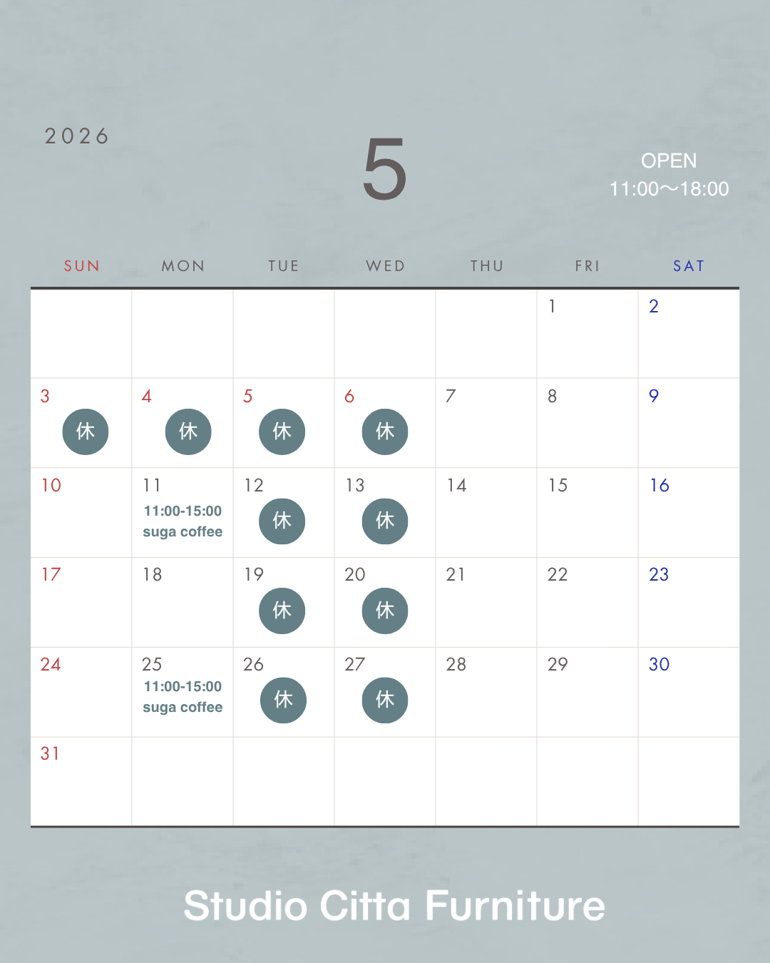 2026年5月7日(木)より通常営業させていただきますので予めご了承くださいませ。